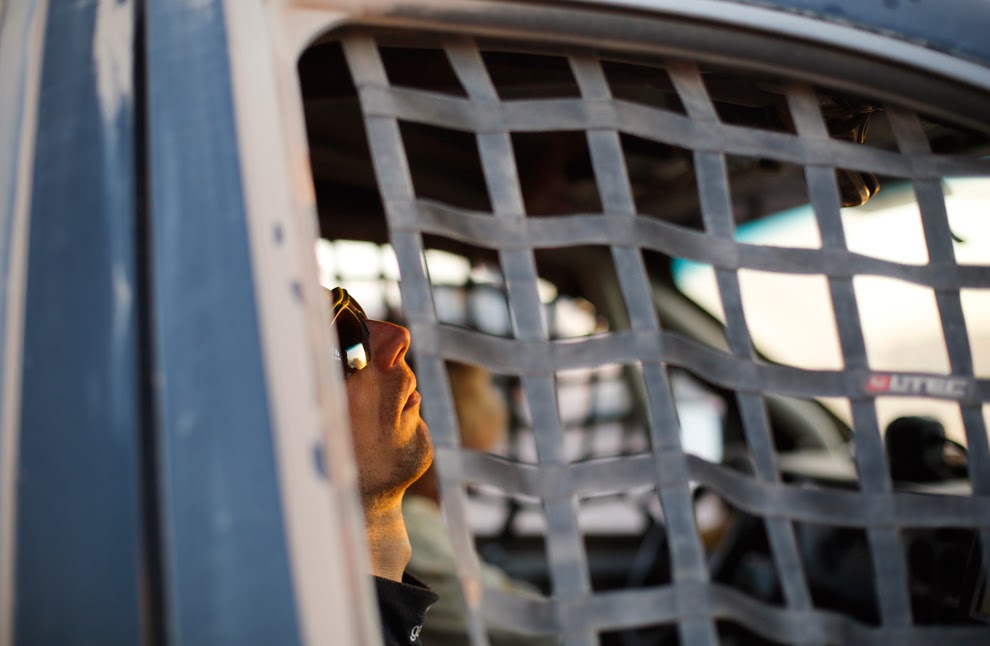 inside his Dodge truck after finishing the eight stage of the Dakar